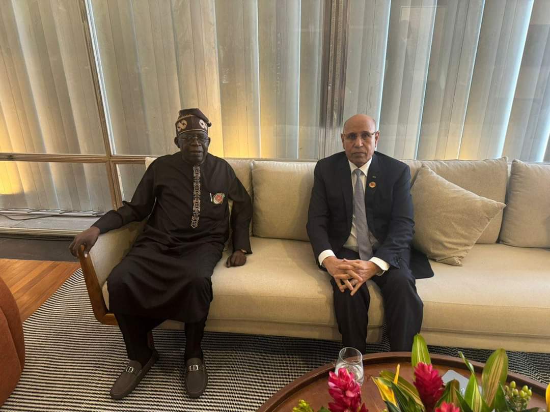 التقى فخامة رئيس الجمهورية، رئيس الاتحاد الإفريقي، السيد محمد ولد الشيخ الغزواني، اليوم الإثنين، على هامش أعمال قمة مجموعة العشرين في مدينة ريو دي جانيرو بالبرازيل، بفخامة الرئيس النيجيري السيد بولا تينوبو. وقد تناول اللقاء تعزيز العلاقات الثنائية...