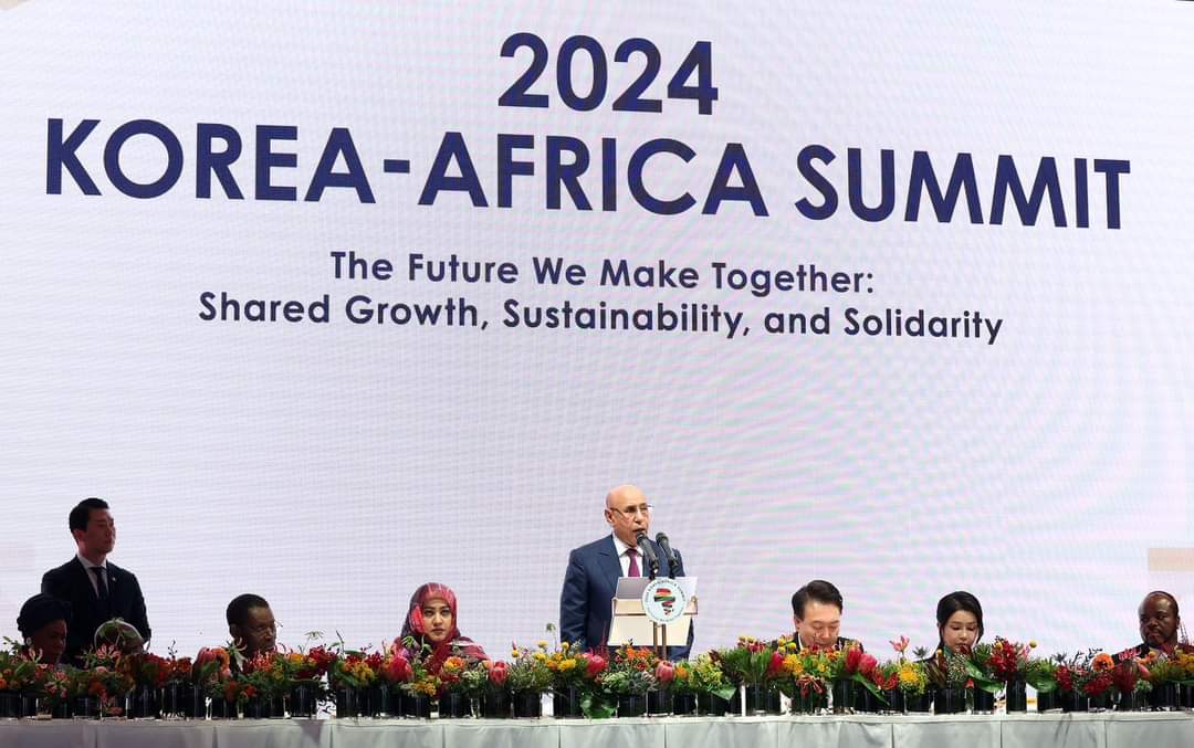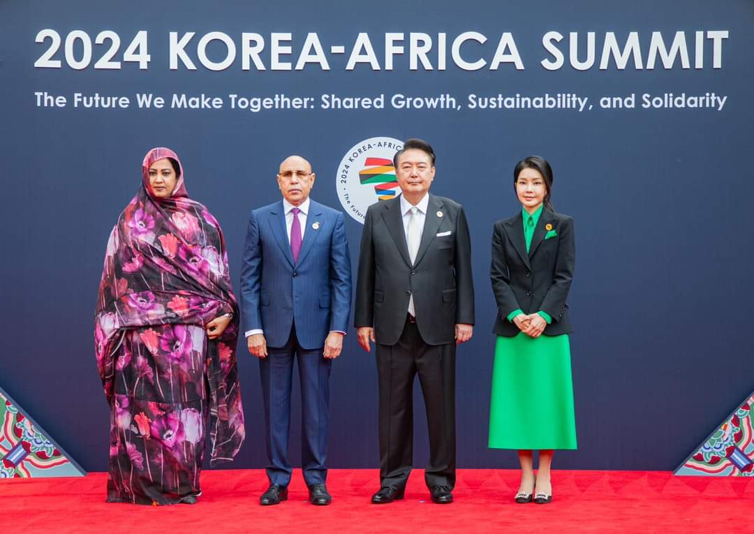 فخامة رئيس الجمهورية، رئيس الاتحاد الإفريقي السيد محمد ولد الشيخ الغزواني، و السيد يون سوك يول، رئيس الجمهورية الكورية، خلال صورة جماعية مع القادة الأفارقة، ورؤساء الوفود الممثلين للرؤساء والحكومات المشاركين في القمة الأفريقية الكورية الأولى، بمدينة ...
