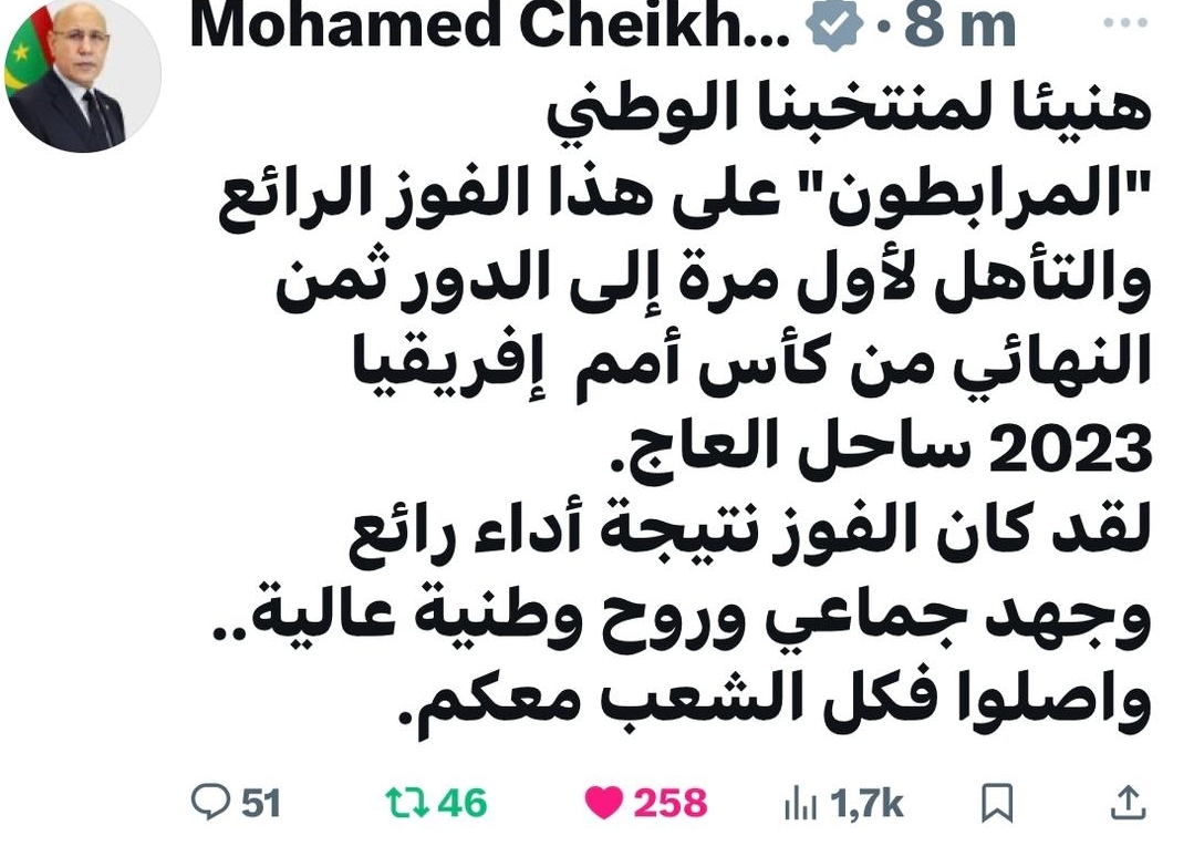 عاد فخامة رئيس الجمهورية السيد محمد ولد الشيخ الغزواني، مساء اليوم الثلاثاء، إلى نواكشوط، قادما من روما بعد أن شارك في أعمال القمة الإيطالية الأفريقية حول التعاون والشراكة. واستقبل فخامة رئيس الجمهورية بمطار نواكشوط الدولي أم التونسي من طرف معالي ...