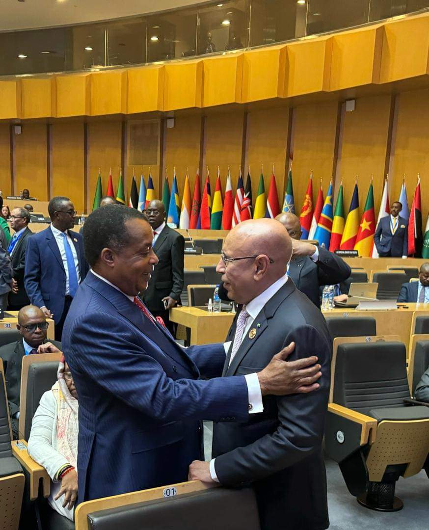 التقى فخامة رئيس الجمهورية، الرئيس الدوري للاتحاد الإفريقي السيد محمد ولد الشيخ الغزواني، صباح اليوم الأحد على هامش الدورة العادية السابعة والثلاثين للجمعية العامة لرؤساء دول وحكومات الاتحاد الإفريقي، بفخامة رئيس جمهورية الكونغو السيد دنيس ساسو انگی...