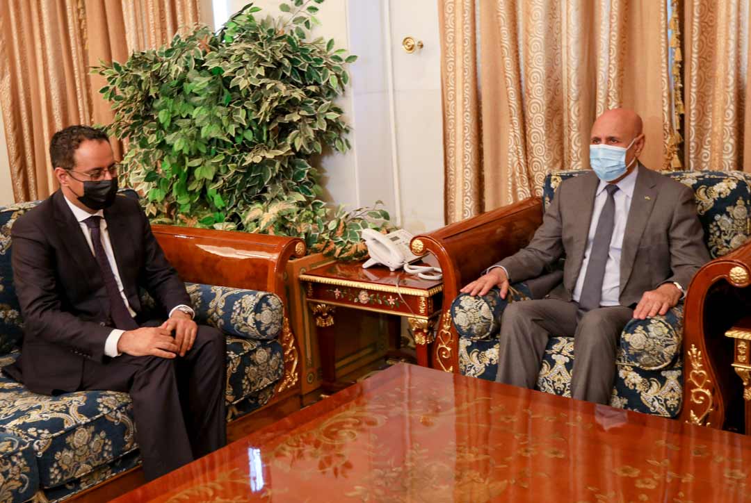 تسلم فخامة رئيس الجمهورية السيد محمد ولد الشيخ الغزواني صباح اليوم الخميس بالقصر الرئاسي في نواكشوط نسخة من ملف ترشح السيد أحمد ولد يحيى رئيس الاتحادية الموريتانية لكرة القدم لرئاسة الاتحاد الأفريقي لكرة القدم "الكاف".
