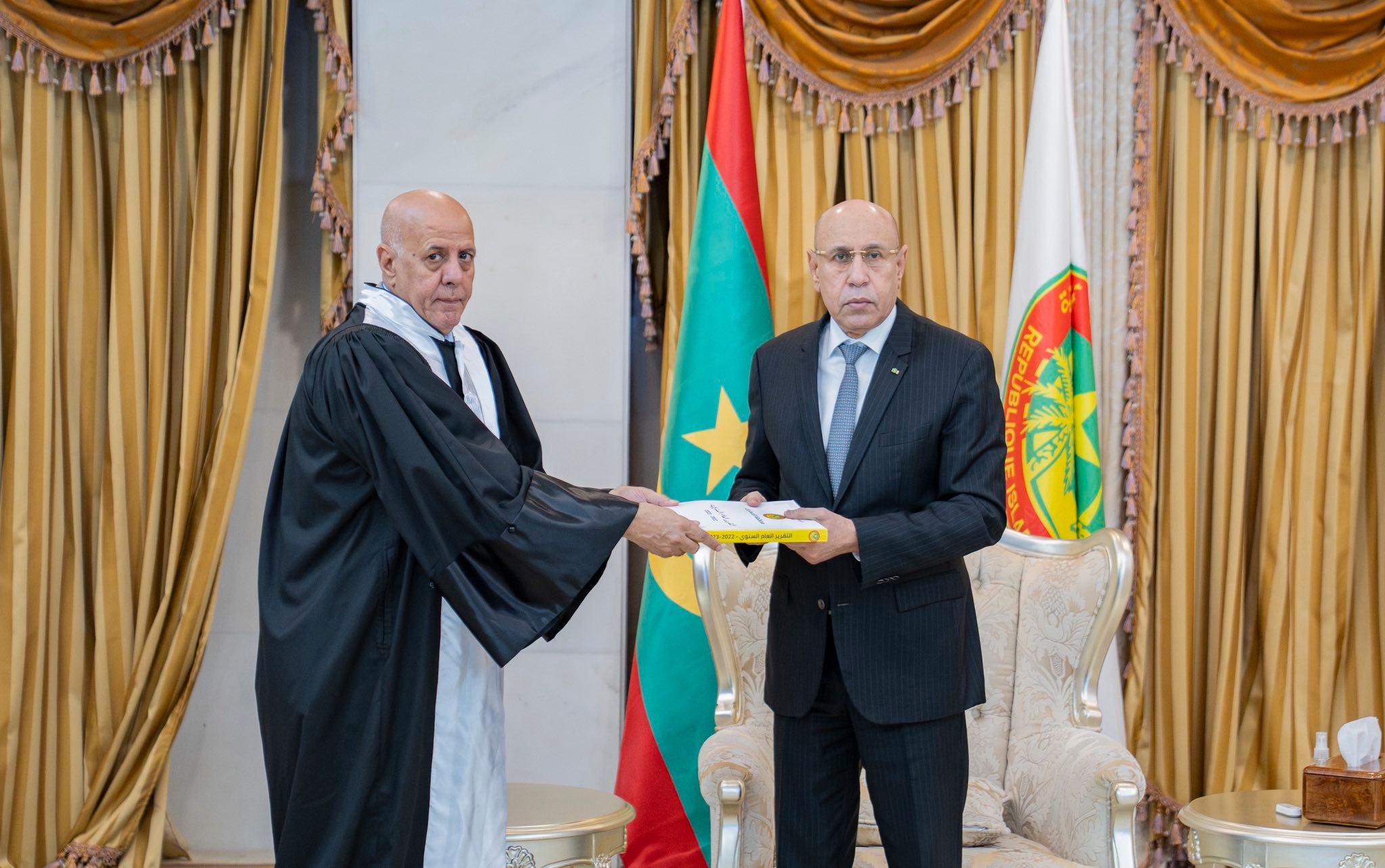 تسلم فخامة رئيس الجمهورية، السيد محمد ولد الشيخ الغزواني، صباح اليوم الأربعاء بالقصر الرئاسي في نواكشوط، التقرير السنوي العام لمحكمة الحسابات من رئيس المحكمة، السيد حميد ولد أحمد طالب.