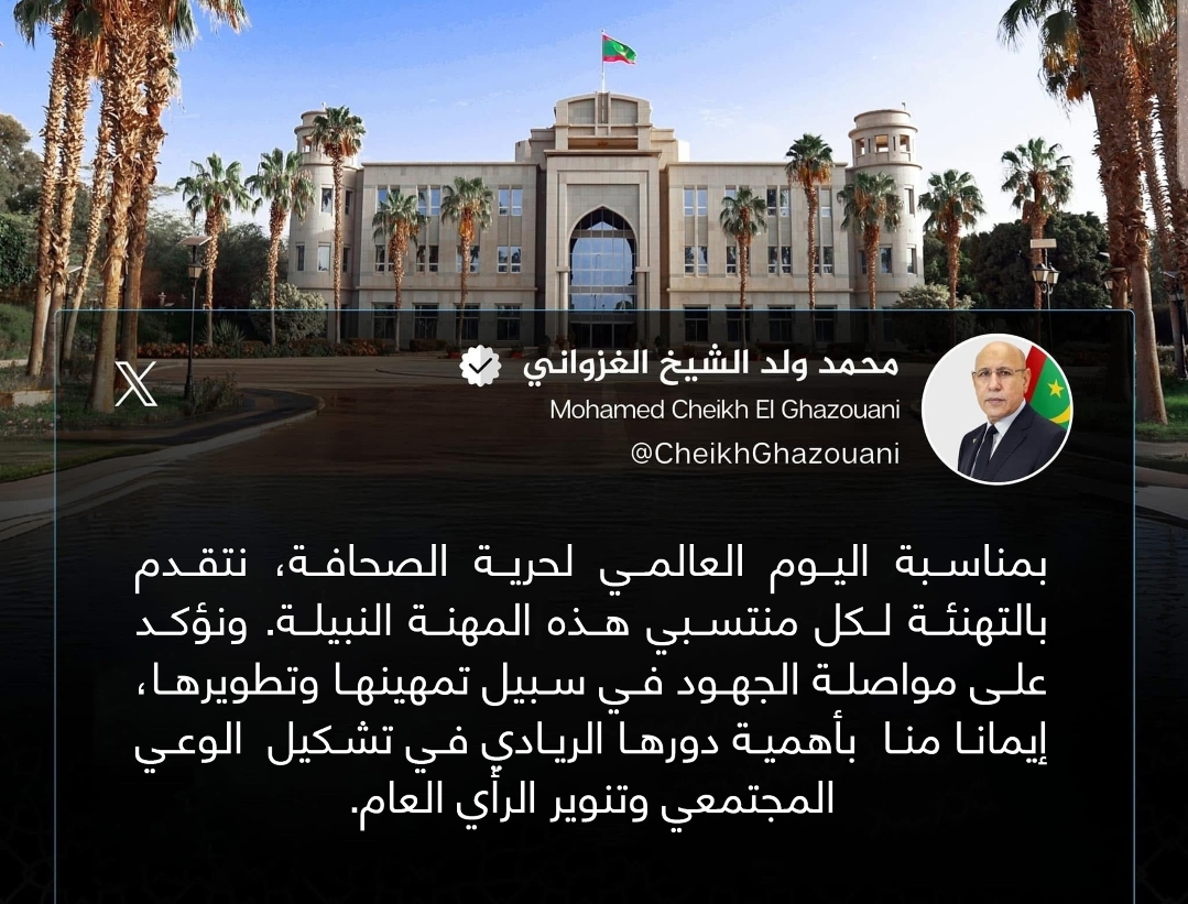 تلقى فخامة رئيس الجمهورية السيد محمد ولد الشيخ الغزواني اليوم الجمعة اتصالا هاتفيا من السيد فريدريش ميرتس مستشار جمهورية ألمانيا الاتحادية.