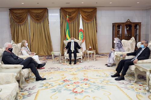 Le Président de la République, M. Mohamed Ould Cheikh El-Ghazouani, a reçu aujourd'hui, mardi au palais présidentiel à Nouakchott, Mme Janet Rogan, ambassadrice régionale de la COP 26 pour le Moyen-orient et l’Afrique en compagnie de SEM. Colin Wells...