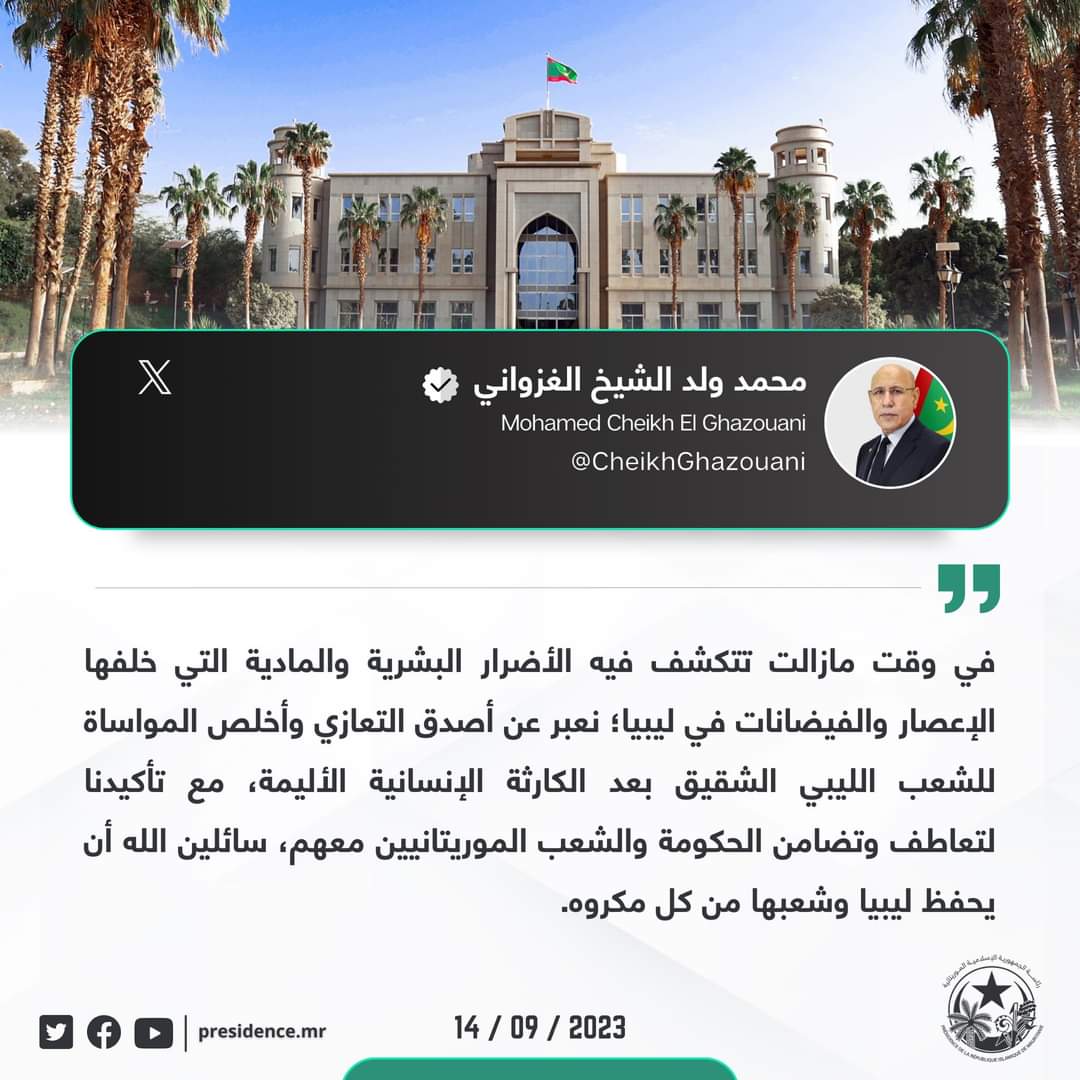 شارك فخامة رئيس الجمهورية السيد محمد ولد الشيخ الغزواني، ظهر اليوم الثلاثاء بدعوة من المستشار الألماني أولاف شولز، في حفل غداء، أقامه الأخير في مقر المندوبية الدائمة لجمهورية ألمانيا الاتحادية في نيويورك. وقد خصص هذا اللقاء لمناقشة قضايا منها تعزيز ...