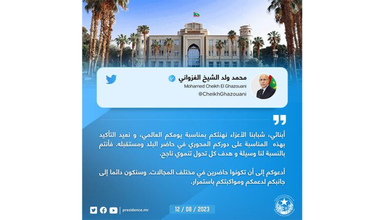 وجه فخامة رئيس الجمهورية السيد محمد ولد الشيخ الغزواني، اليوم الأربعاء برقية التهنئة التالية إلى السيد فولوديمير زلنسكي، رئيس أوكرانيا، بمناسبة احتفال بلاده بعيدها الوطني: “صاحب الفخامة، بمناسبة احتفال بلادكم بعيدها الوطني، وفي الظروف العصيبة التي...